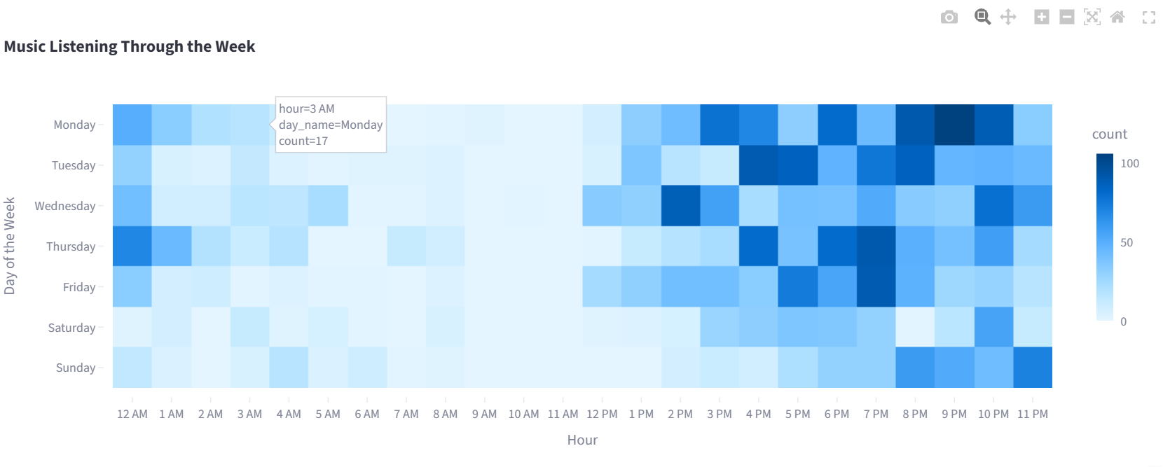 An app created with streamlit that takes in user inputted music listening data from a variety of formats and analyses it. Returns insights and visualizations to help users understand music listening patterns.